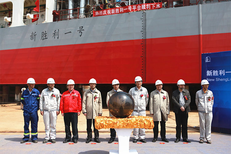 5月2日上午10:58分,中集來福士為中石化勝利石油工程有限公司建造的自升式鉆井平臺“新勝利一號”在公司碼頭舉行了隆重的下水儀式。中石化勝利石油工程有限公司相關領導出席了儀式。