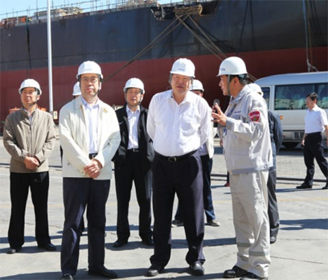 2014年9月24日上午,山東省委第二批黨的群眾路線教育實踐活動赴煙臺市督導組組長、原副省長張建國在煙臺市委書記張江汀陪同下到中集來福士考察。