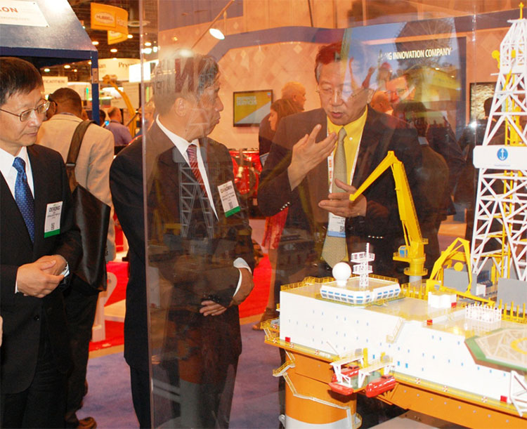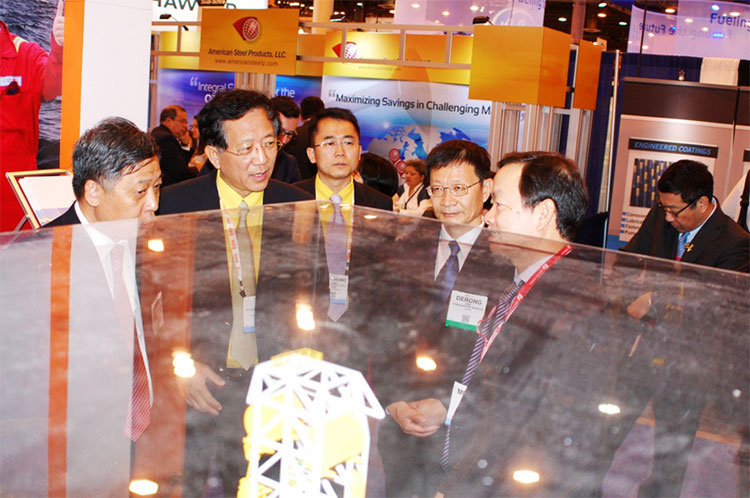 2015年5月5日,中國駐休斯敦總領事李強民到訪中集來福士OTC展臺,參觀了中集來福士設計建造的系列半潛式鉆井平臺。