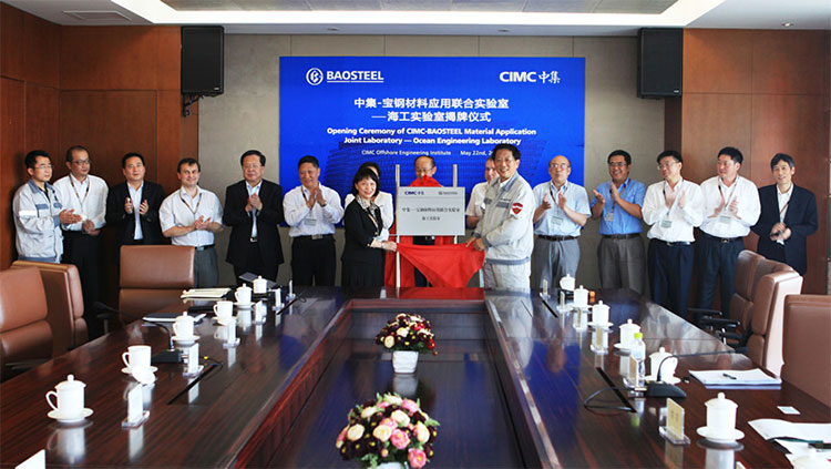 2015年5月22日,中集—寶鋼材料應用聯合實驗室揭牌儀式在煙臺中集海洋工程研究院舉行。山東省科技廳副廳長于書良、煙臺市副市長張廣波、烏克蘭國家科學院合作局局長SERGIY MYAKUSHKO 、寶鋼股份副總經理王靜、中集來福士總裁于亞等參加了揭牌儀式。