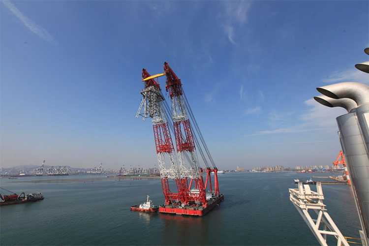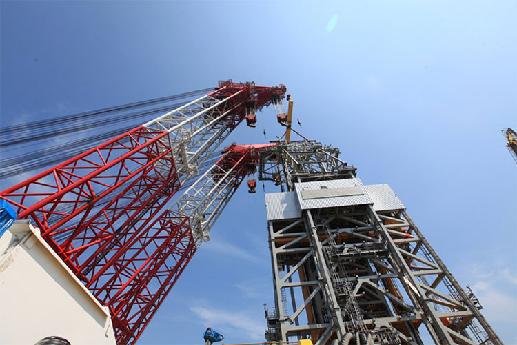 2015年8月29日,隨著D90超深水半潛式鉆井平臺的塔帽與塔架成功對位、完成安裝,全球最大的半潛式鉆井平臺完成了整個鉆井架的安裝工作。