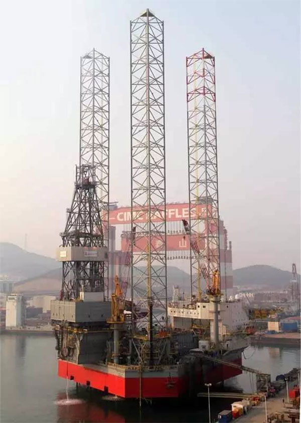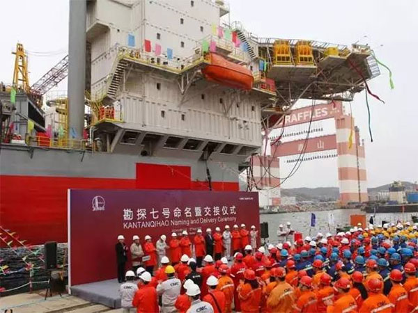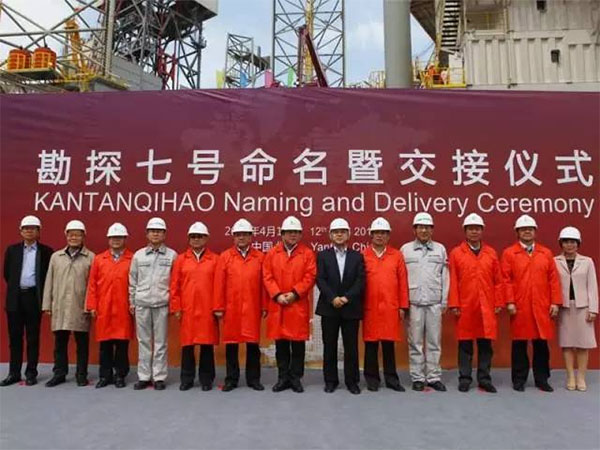 2016年4月12日,中集來福士為中石化海洋石油工程有限公司建造的400英尺JU2000E型自升式鉆井平臺“勘探七號”在煙臺命名交接。