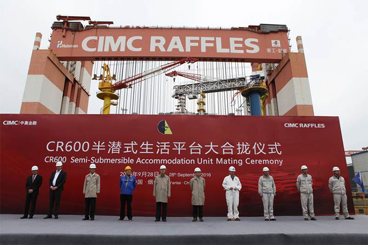 2016年9月28日上午10:00,被稱之為海上希爾頓項目CR600半潛式生活平臺,在山東煙臺舉行隆重的上、下船體合攏儀式。