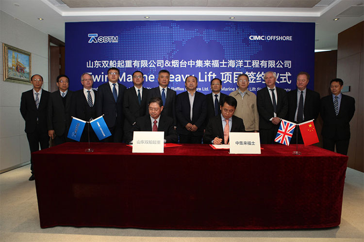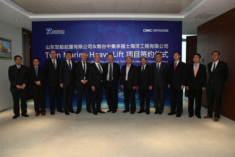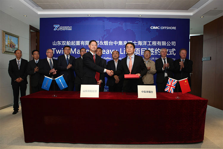 2016年11月18日,山東海洋投資有限公司(簡稱“山東海投”)旗下山東海洋工程裝備有限公司(簡稱“山東海工“)所屬的山東雙船起重有限公司(SDTM)與煙臺中集來福士海洋工程有限公司(簡稱“中集來福士”)簽署TML(雙船重吊起重系統)項目建造合同,這是依據全球最先進拆解理念“雙船起重和三船聯動作業”建造的新式海上平臺拆解項目,主要用于海上固定式平臺的安裝和拆解,交付后將于英國北海海域作業。山東省國防科工辦主任王超英、山東省國資委副主任尹剛、山東海投董事長包劍英、中集來福士總裁王建中等出席簽約儀式。山東海投總經理、山東海工董事長范成海與中集來福士總裁王建中代表雙方簽約。