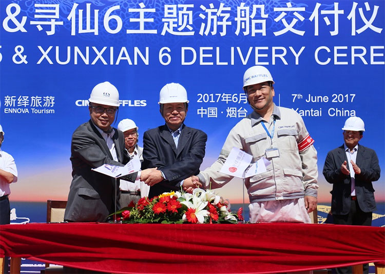 2017年6月7日,中集來福士海洋工程有限公司(簡稱“中集來福士”)為北部灣旅游股份有限公司(簡稱“北部灣旅游”)旗下全資子公司煙臺新繹游船有限公司(簡稱“新繹公司”)設計建造的2艘“尋仙”系列主題游船和4艘“求仙”系列99客位主題游艇分別在煙臺建造基地和龍口建造基地交付,這是中集來福士在旅游供給側改革方面取得的突出成績,夯實了中集來福士在高端游船和游艇領域的自主研發和批量建造能力,對于提升雙方高端海洋旅游品牌影響力也具有重要推動作用。