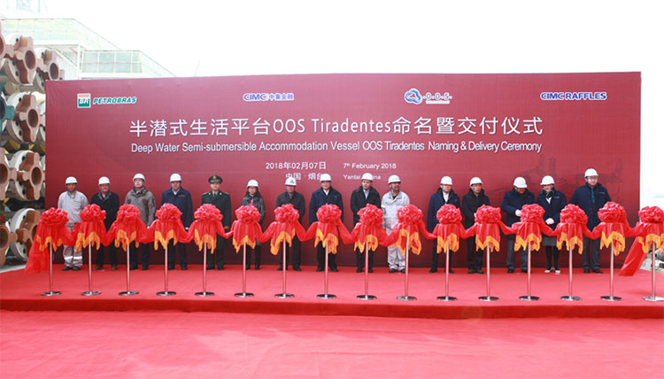 2018年2月7日,由中集來福士海洋工程有限公司(以下簡稱“中集來福士”)自主設計建造的高端半潛式生活平臺OOS Tiradentes(原名“CR600”)在其煙臺基地交付,將在煙臺海關的護航下,開赴巴西進行作業。該平臺能夠在低油耗、綠色環保的前提下,為用戶提供非常安全和舒適的工作環境。其交付標志著中集來福士在高端半潛平臺自主設計建造方面取得連續突破,并推進了海工配套裝備的國產化進程。這也是中集來福士積極響應國家“一帶一路”倡議和“海洋強國”戰略取得的成績。