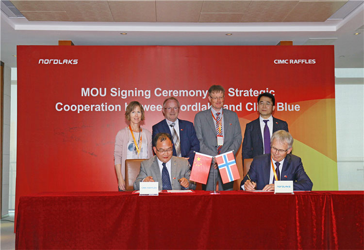 當日,Per Sandberg部長還見證了中集藍與Nordlaks簽署戰略合作協議。根據協議,中集藍與Nordlaks就設計建造新一代“Havfarm”系列工船達成合作意向,包括但不限于活魚運輸船、魚產品加工船等;雙方共同探討從挪威向全球出口、銷售以及加工高品質三文魚及其它海產品的合作模式;雙方承諾把彼此作為魚類養殖的全球首選合作伙伴,共同開發漁業養殖解決方案。付日新表示:“中集來福士與挪威有良好的漁業合作基礎。下一步山東希望深化與挪威在海洋科技、人才、裝備等領域的交流合作,實現互利共贏。”