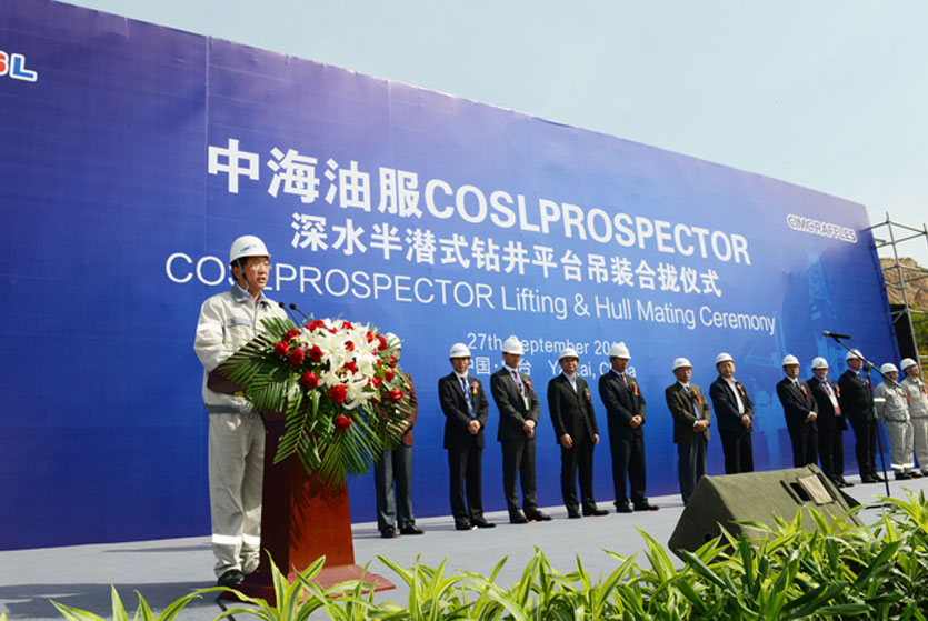 9月27日上午,煙臺(tái)中集來福士海洋工程有限公司(以下簡(jiǎn)稱“中集來福士”)為中海油田服務(wù)股份有限公司(以下簡(jiǎn)稱“中海油服”)歐洲鉆井公司承建的第四座深水半潛式鉆井平臺(tái)中海油服興旺號(hào)上下船體成功合攏。這是中集來福士2萬噸橋式起重機(jī)“泰山”第九次完成半潛平臺(tái)大合攏。中國(guó)船舶行業(yè)工業(yè)協(xié)會(huì)會(huì)長(zhǎng)張廣欽、山東省國(guó)防工辦主任王超英、中海油服首席執(zhí)行官兼總裁李勇、中海油服歐洲鉆井公司總裁Jorgen和中集來福士總裁于亞等出席合攏儀式。
